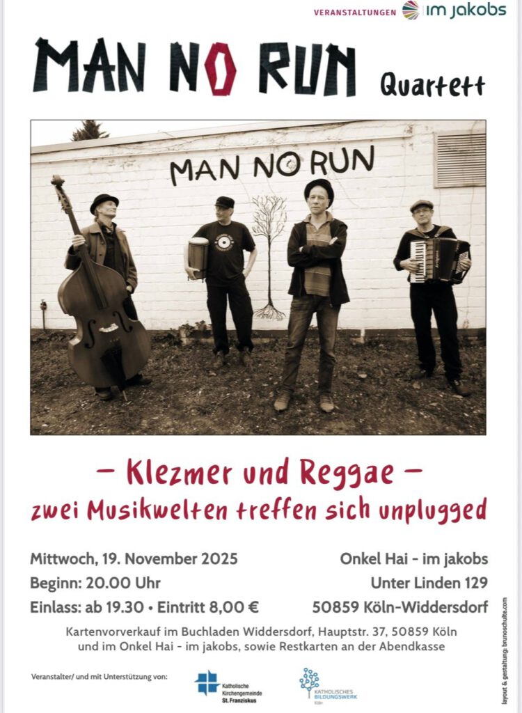 Drei Mitglieder der Band spielten bereits vor 30 Jahren in der Reggaeband Man No Run. Nach zwei Jahren trennten sich die Lebenswege der Musiker und die Band löste sich auf. Aus einem zufälligen Treffen nach 25 Jahren entstand die Idee wieder gemeinsam Musik zu machen. Gesagt, getan: Man No Run ist wieder da. Aus ihren persönlichen und musikalischen Erfahrungen haben die vier Musiker einen eigenen Stil entwickelt. Immer nach dem Motto: „Man No Run“.